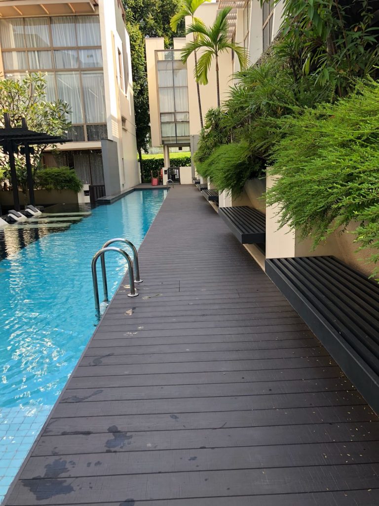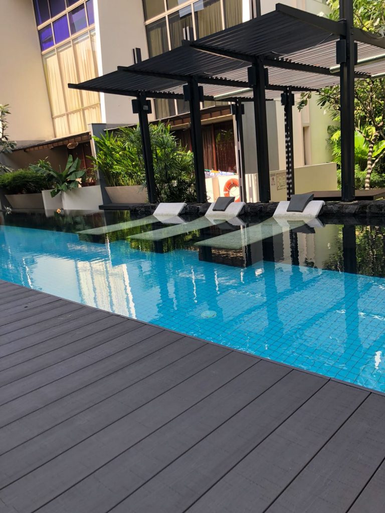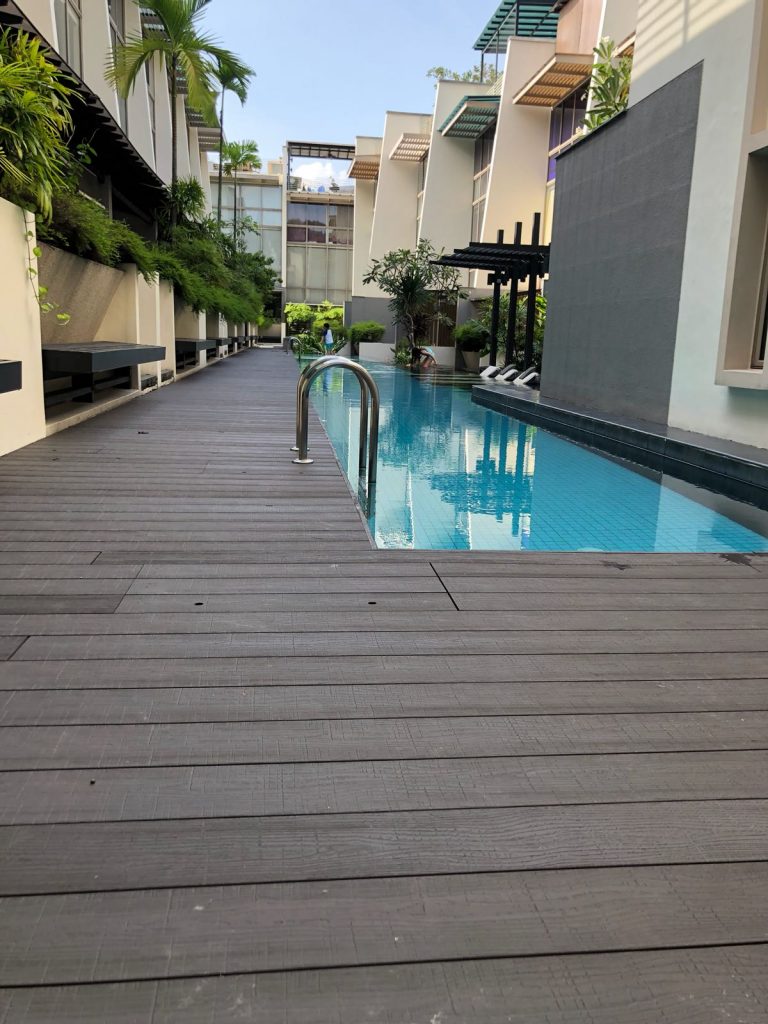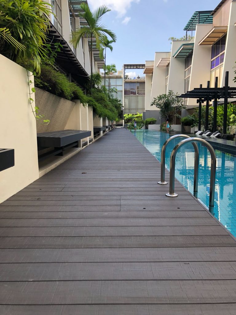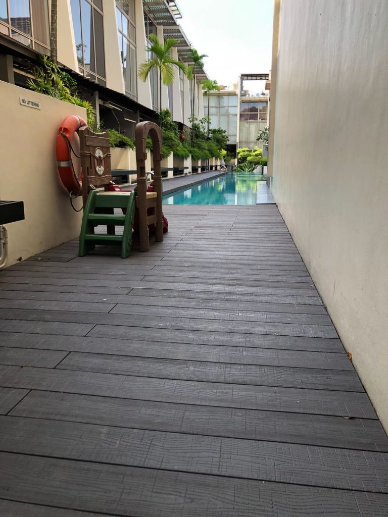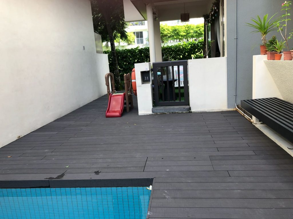 Eco Fusion Deck – All-weather resistant, rain or shine. Ideal for balcony decking in Singapore. Its embossed surface enhances its slip resistant properties.