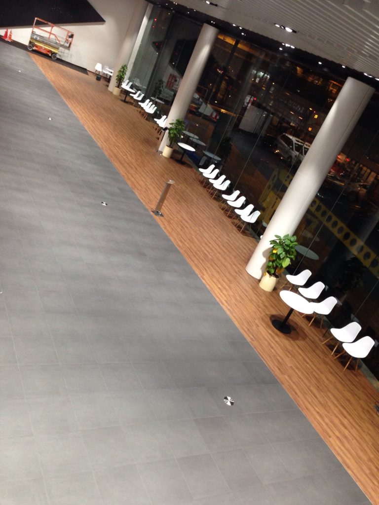 Flooring installed: Eco-Resilient Flooring // The floor of this Mazda showroom is installed with our Eco resilient flooring. Beautiful and elegant, it exudes class of the showroom, and of course not forgetting all the Eco-friendly properties of this flooring too!